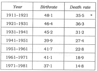 Natural growth rate in the period 1971 -1981 = 37.1 - 14.8 = 22.3